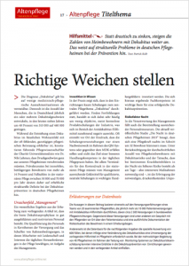 Dekubitus – das Titelthema der Altenpflege online im Januar 2016: Statt drastisch zu sinken, steigen die Zahlen von Heimbewohnern mit Dekubitus weiter an. Das weist auf strukturelle Probleme in deutschen Pflegeheimen bei der Prävention hin.